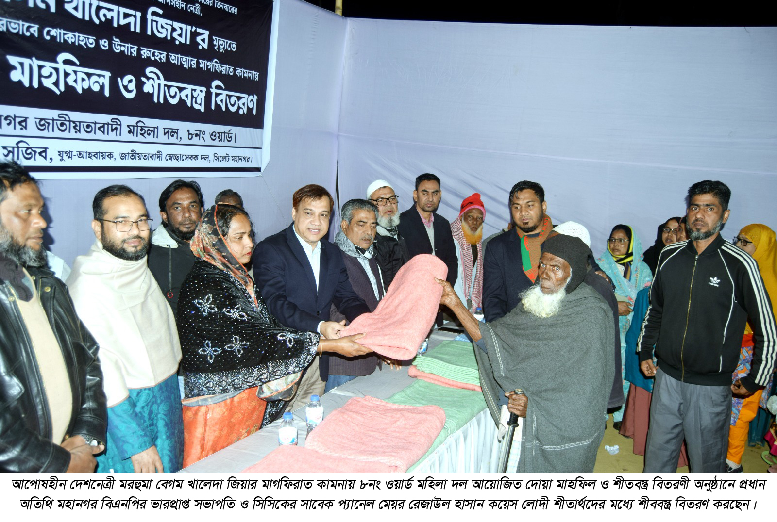 তিনি সোমবার (৫ জানুয়ারি) রাতে সিলেট নগরীর আখালিয়া নতুন বাজার ব্রাহ্মণ শাষন এলাকায় বিএনপির চেয়ারপার্সন ও সাবেক প্রধানমন্ত্রী মরহুমা বেগম খালেদা জিয়ার মাগফিরাত কামনায় মহানগরীর ৮নং ওয়ার্ড মহিলা দল আয়োজিত দোয়া মাহফিল ও শীতবস্ত্র বিতরণকালে প্রধান অতিথির বক্তব্যে উপরোক্ত কথাগুলো বলেন।