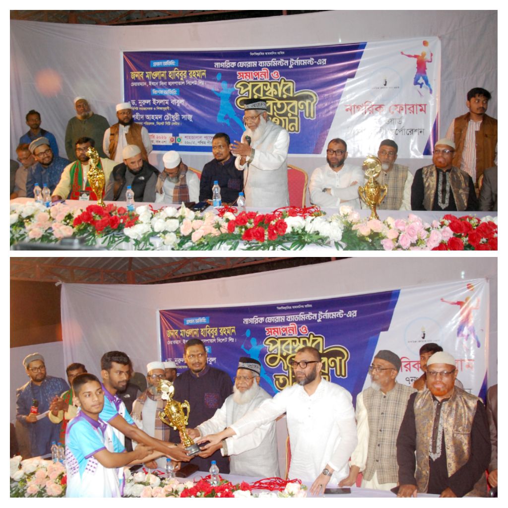 নাগরিক ফোরামের সভাপতি সাজিদ আহমদ চৌধুরী রানার সভাপতিত্বে ও কামাল উদ্দিনের সঞ্চালনায় অনুষ্টানে উপস্থিত ছিলেন এলাকার বিশিষ্ট মুরুব্বি মাহমুদুর রহমান, অলিউর রহমান, জিল্লুর রহমান, আনোয়ার হোসেন প্রমুখ। টুর্ণামেন্টে প্রথম স্থান অধিকার করেছেন সাজ্জাদুর রহমান ও শাওন এবং দ্বিতীয় স্থান অধিকার করেছেন শিপন ও সাঈদ। অনুষ্টানে প্রধান অতিথিসহ অন্যান্যরা বিজয়ীদের হাতে পুরস্কার তুলে দেন। বিজ্ঞপ্তি