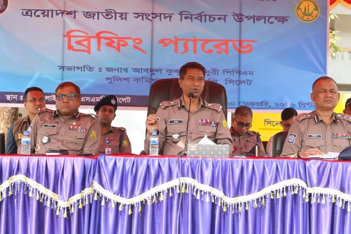 অদ্য ১০/০২/২০২৬খ্রিঃ দুপুর ১৪:০০ ঘটিকায় এসএমপি পুলিশ লাইন্স মাঠে ত্রয়োদশ জাতীয় সংসদ নির্বাচন ও গণভোট-২০২৬ শান্তিপূর্ণ, অবাধ ও সুষ্ঠুভাবে সম্পন্ন করার লক্ষ্যে গুরুত্বপূর্ণ ব্রিফিং প্যারেড অনুষ্ঠিত হয়। উক্ত ব্রিফিং প্যারেডে সভাপতিত্ব করেন মান্যবর পুলিশ কমিশনার জনাব আবদুল কুদ্দুছ চৌধুরী, পিপিএম মহোদয়।
