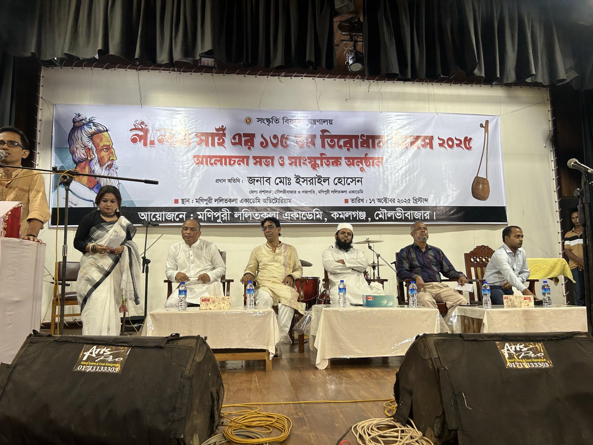মৌলভীবাজারের কমলগঞ্জে মণিপুরী ললিতকলা একাডেমির উদ্যোগে লালন সাঁইয়ের ১৩৫তম তিরোধান দিবস উপলক্ষে আলোচনা সভা ও সাংস্কৃতিক অনুষ্ঠান অনুষ্ঠিত হয়েছে। একই অনুষ্ঠানে ‘তারুণ্যের উৎসব ২০২৫’-এর অংশ হিসেবে মণিপুরী তাঁতবস্ত্র বুনন প্রশিক্ষণ কর্মসূচিরও উদ্বোধন করা হয়।