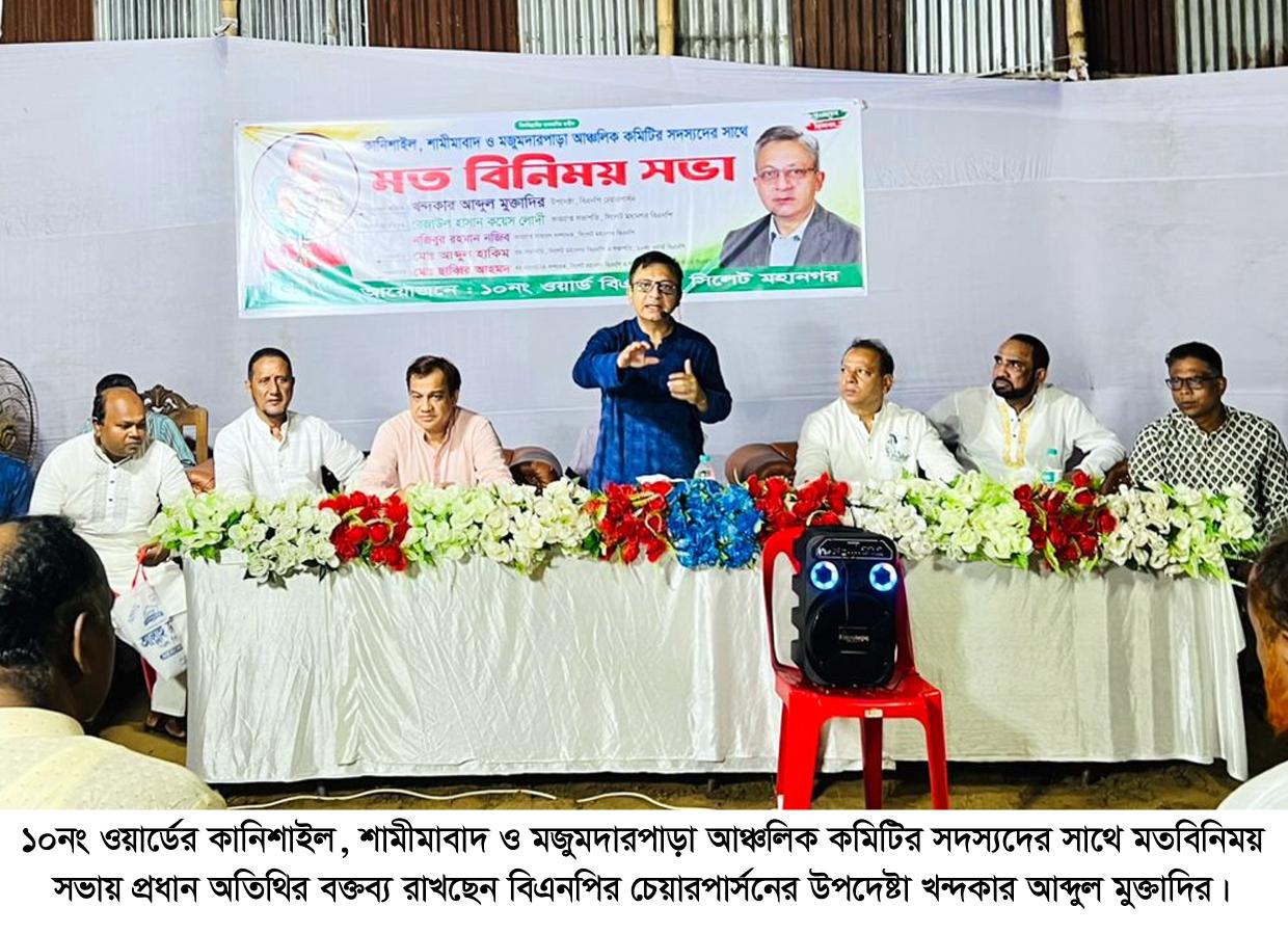 তিনি শুক্রবার (৩ অক্টোবর) ১০নং ওয়ার্ডের কানিশাইল, শামীমাবাদ ও মজুমদারপাড়া আঞ্চলিক কমিটির সদস্যদের সাথে মতবিনিময় সভায় প্রধান অতিথির বক্তব্যে উপরোক্ত কথাগুলো বলেন।