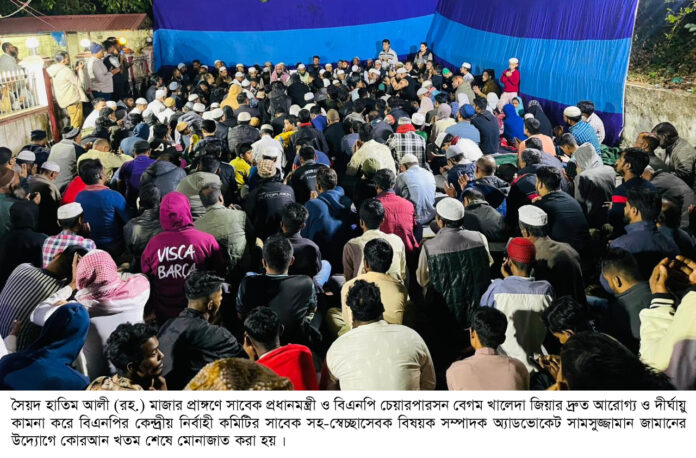 খালেদা জিয়ার সুস্থতা কামনায় অ্যাডভোকেট জামানের উদ্যোগে কোরআন খতম ও দোয়া।