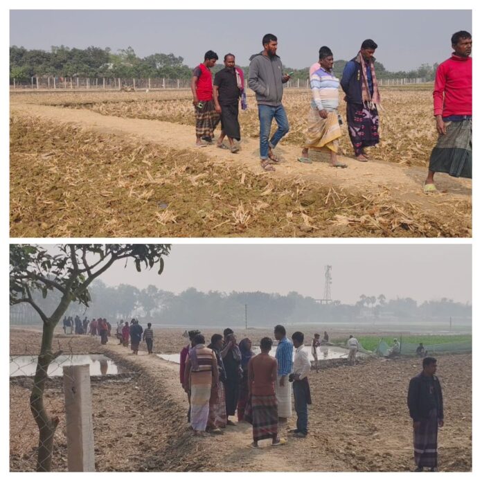 ব্যক্তিগত জমির জোরপূর্বক রাস্তা নির্মানের অভিযোগ উঠেছে। প্রতিকার চেয়ে ভুক্তভোগী থানায় অভিযোগ করেছে।ঘটনাটি ঘটেছে চাঁপাইনবাবগঞ্জ জেলার গোমস্তাপুর উপজেলার পারবর্তী ইউনিয়নের গাছপুকুর গ্রামে। গত ১৭ জানুয়ারী আখতারুজ্জামান স্বাক্ষরিত গোমস্তাপুর থানার অফিসার ইনচার্জ বরাবর অভিযোগ সূত্রে জানা গেছে,গত ১৪ জানুয়ারী সকাল সাড়ে ১০টার দিকে একই ইউনিয়নের পারবর্তীপুর হাট খোলা গ্রামের টুটুল, হাফিজ, গোলাম মোস্তফা, মনিরুল ইসলাম সহ প্রায়৩০/৩৫ জ আখতারুজ্জামানের জমির ওপর দিয়ে রাস্তা নির্মানের কাজ শুরু করেছে সংবাদ পেয়ে আমরা ঘটনাস্থলে গেলে তারা আমাদেরকে অশ্লীল ভাষায় গালিগালাজ করে এবং তাদের হাতে থাকা দেশীয় অস্ত্র সস্ত্র দিয়ে আমাদের ওপর হামলা করলে প্রাণ ভয়ে আমরা পালিয়ে যায় এবং থানা পুলিশের হস্তক্ষেপে রাস্তার কাজ বন্ধ হয়। পরে আবারো তারা রাস্তা নির্মান করে। এ ব্যাপারে পার্বতীপুর ইউনিয়ন পরিষদ চেয়ারম্যান ঘটনার সত্যতা স্বীকার করে বলেন আমি সংবাদ পেয়ে ঘটনাস্থলে উপস্থিত হয়ে সমাধান করার চেষ্টা করে ব্যর্থ হয়েছি। তদন্তকারী কর্মকর্তা এ এস আই এমরান হোসেন বলেন ঘটনাস্থলে উপস্থিত হয়ে রাস্তা নির্মানের কাজ বন্ধ করেছি এবং আখতারুজ্জামানের করা অভিযোগ তদন্ত শেষে কোর্ট প্রেরণ করেছি।