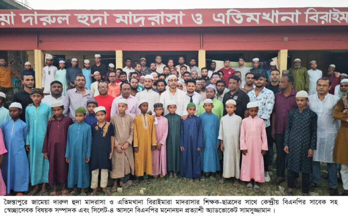 কেন্দ্রীয় বিএনপির সাবেক সহ স্বেচ্ছাসেবক বিষয়ক সম্পাদক এবং সিলেট-৪ আসনে বিএনপির মনোনয়ন প্রত্যাশী অ্যাডভোকেট সামসুজ্জামান মসজিদ ও মাদরাসার উন্নয়নে সম্মিলিত প্রচেষ্টার পাশাপাশি দেশে শান্তি, ন্যায়বিচার ও টেকসই উন্নয়ন নিশ্চিত করতে আলেম সমাজকে জনগণের সঙ্গে সম্পৃক্ত হয়ে সত্য ও ন্যায়ের পক্ষে অবস্থান নেওয়ার আহ্বান জানিয়েছেন। তিনি জোর দিয়ে বলেছেন যে ইসলামি আদর্শই একটি কল্যাণকর ও ন্যায়ভিত্তিক রাষ্ট্র গড়ে তুলতে পারে।