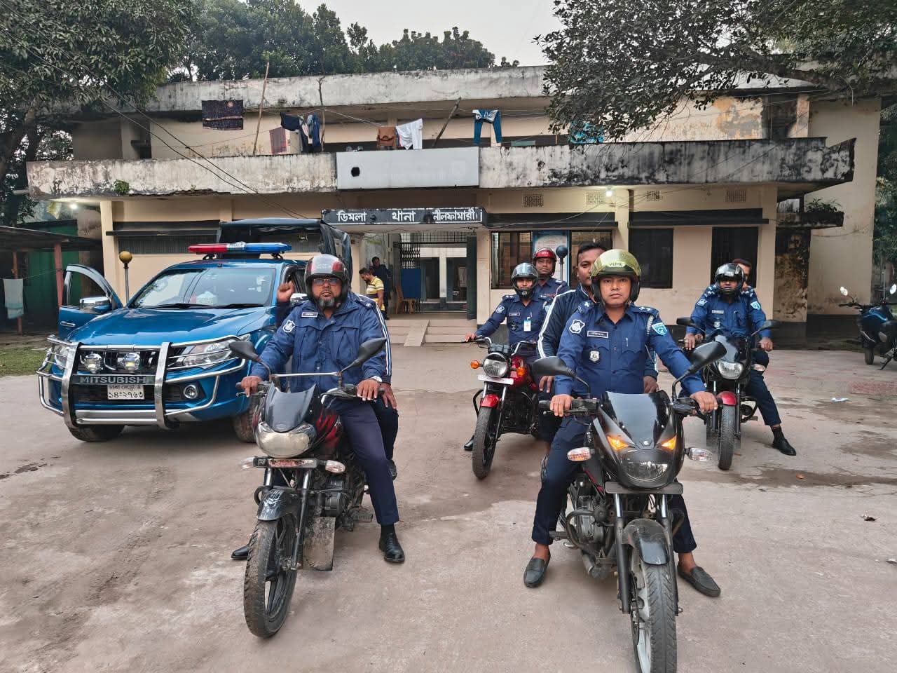 নীলফামারী জেলার ডিমলা উপজেলার আইন শৃঙ্খলা পরিস্থিতি স্বাভাবিক রাখতে এবার কঠোরভাবে মাঠে নেমেছেন ডিমলা থানা পুলিশ। ডিমলা থানার অফিসার ইনচার্জ ফজলে এলাহীর নেতৃত্বে ফ্যাসিস্ট ও নিষিদ্ধ সংগঠনের সদস্য গ্রেফতার,নাশকতামুলক কর্মকান্ড প্রতিরোধ ও কিশোর গ্যাং রোধসহ অপরাধ তৎপরতা নিয়ন্ত্রণে পুলিশি টহল ও অভিযান জোরদার করা হয়েছে। বুধবার (১২ নভেম্বর) বিকেলে ডিমলা থানার অফিসার ইনচার্জ ফজলে এলাহীর নেতৃত্বে পুলিশের বিশেষ একটি টিম গাড়িবহর নিয়ে ডিমলা উপজেলায় টহল দিতে দেখা যায়।