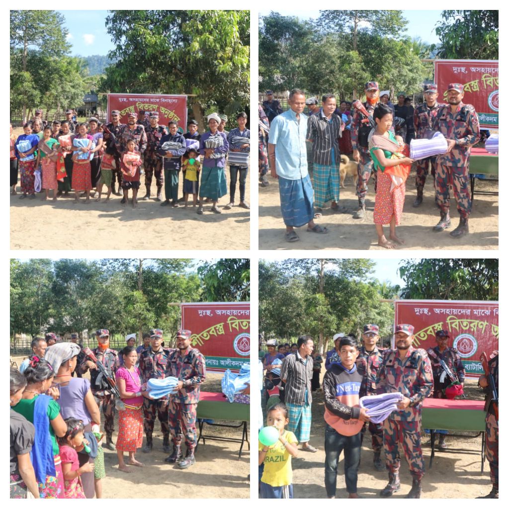 আলীকদম ব্যাটালিয়ন (৫৭ বিজিবি) এর আওতাধীন দূর্গম সীমান্তে বসবাসরত পাহাড়ী ক্ষুদ্র নৃ-গোষ্ঠী শীতার্ত মানুষের মাঝে শীতবস্ত্র হিসেবে (কম্বল) বিতরণ এবং আর্থিক অনুদান প্রদান করা হয়েছে।