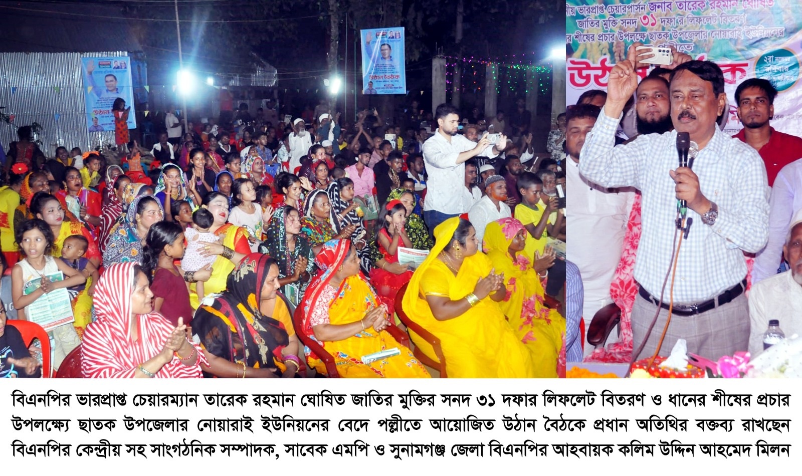 রবিবার (২ নভেম্বর) সন্ধ্যায় বিএনপির ভারপ্রাপ্ত চেয়ারম্যান তারেক রহমান ঘোষিত জাতির মুক্তির সনদ ৩১ দফার লিফলেট বিতরণ ও ধানের শীষের প্রচার উপলক্ষ্যে ছাতক উপজেলার নোয়ারাই ইউনিয়নের বেদে পল্লীতে আয়োজিত উঠান বৈঠকে প্রধান অতিথির বক্তব্যে তিনি এসব কথা বলেন।