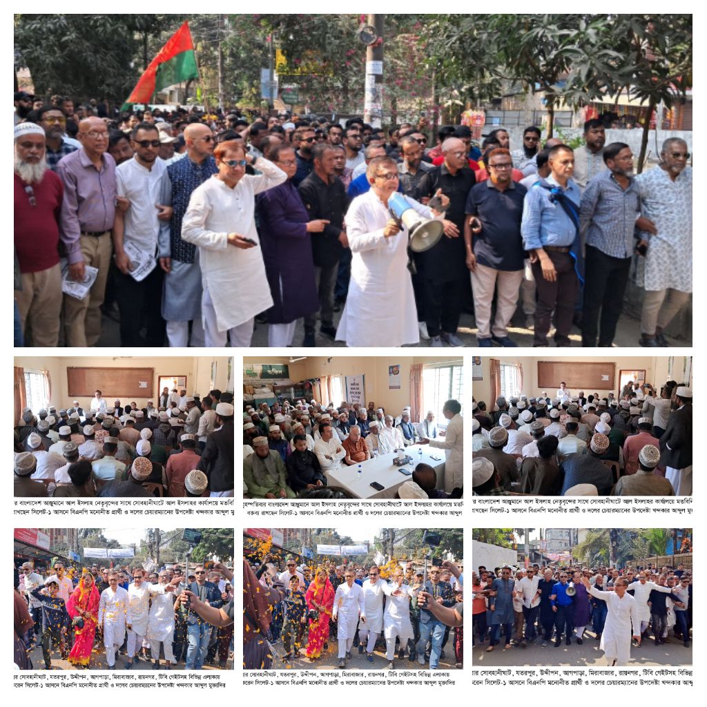 বাংলাদেশ আঞ্জুমানে আল ইসলাহর পক্ষ থেকে আসন্ন জাতীয় সংসদ নির্বাচনে সিলেট-১ আসনে বিএনপি মনোনীত প্রার্থী খন্দকার আব্দুল মুক্তাদিরকে অকুণ্ঠ সমর্থন প্রদান করা হয়েছে। আজ বৃহস্পতিবার (২৯ জানুয়ারি) সকালে সিলেট নগরীর সোবহানীঘাটে আল ইসলাহর কার্যালয়ে এক মতবিনিময় সভায় সংগঠনটির পক্ষ থেকে এই সমর্থনের ঘোষণা দেওয়া হয়। এদিকে, খন্দকার মুক্তাদিরের প্রধান নির্বাচনী কার্যালয় উদ্বোধন করা হয়েছে। এছাড়াও পূর্বে ঘোষিত কর্মসূচির অংশ হিসেবে সোবহানীঘাট থেকে গনসংযোগে হাজার নেতাকর্মী ও সাধারণ জনতার অংশগ্রহণ করেন। এসময় গণসংযোগ মিছিলে পরিণত হয়।
