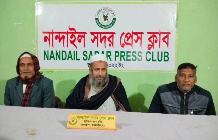 ময়মনসিংহ-৯ (নান্দাইল) আসনের জাতীয় পার্টির মনোনীত ত্রয়োদশ জাতীয় সংসদ নির্বাচনের প্রার্থী হাসমত মাহমুদ তারেক নান্দাইল সদর প্রেসক্লাবের সাংবাদিকদের সঙ্গে এক মতবিনিময় সভায় অংশ নিয়েছেন।