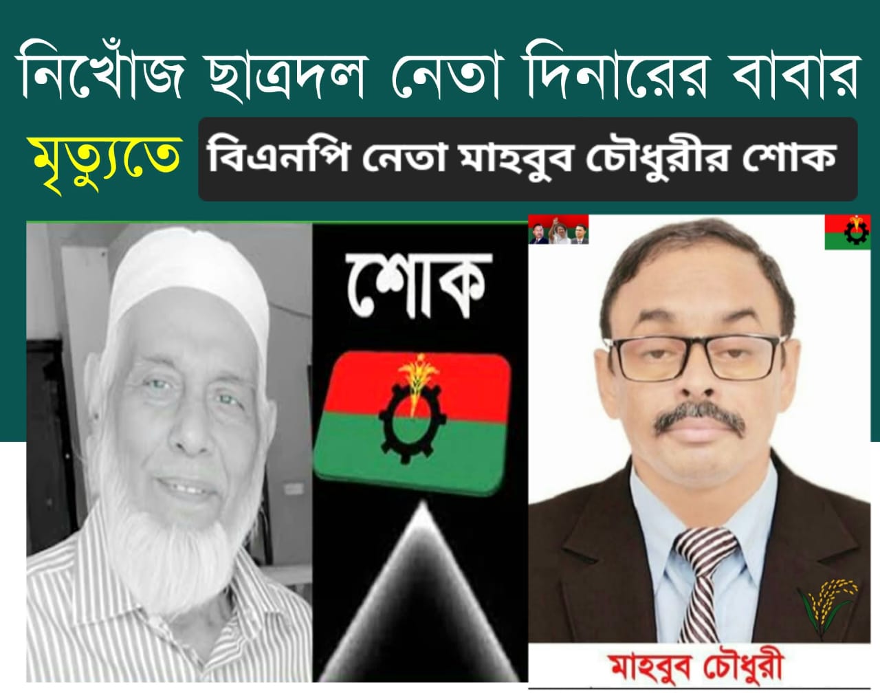 নিখোঁজ ছাত্রদল নেতা দিনারের বাবার মৃত্যুতে বিএনপি নেতা মাহবুব চৌধুরীর শোক।