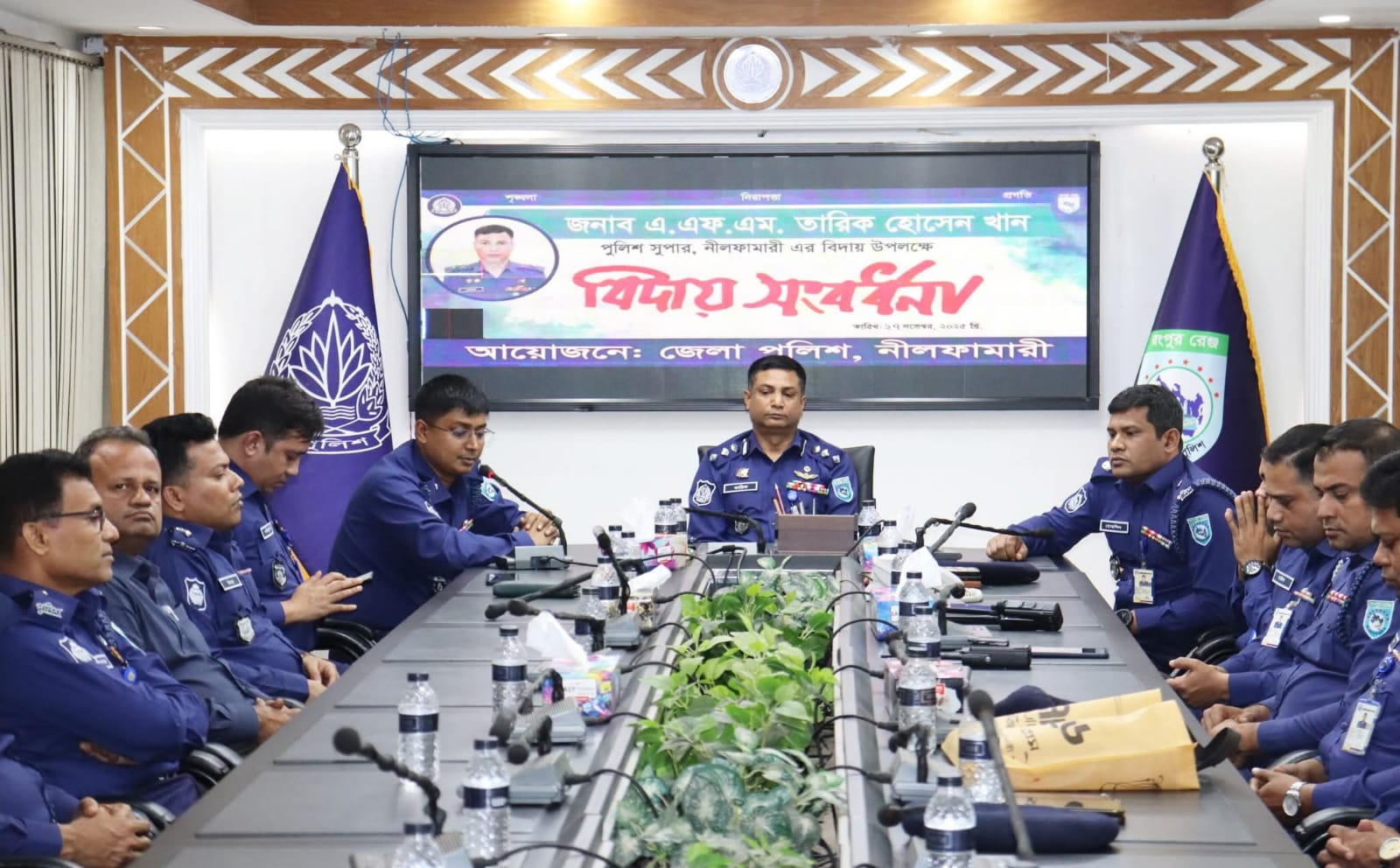 নীলফামারী জেলা পুলিশের আয়োজনে পুলিশ সুপার এ. এ. এফ. এম তারিক হোসেন খানের বদলিজনিত প্রস্থান উপলক্ষে বৃহস্পতিবার (২৭ নভেম্বর) বিকালে পুলিশ সুপার কার্যালয়ে বিদায় সংবর্ধনা অনুষ্ঠিত হয়েছে।