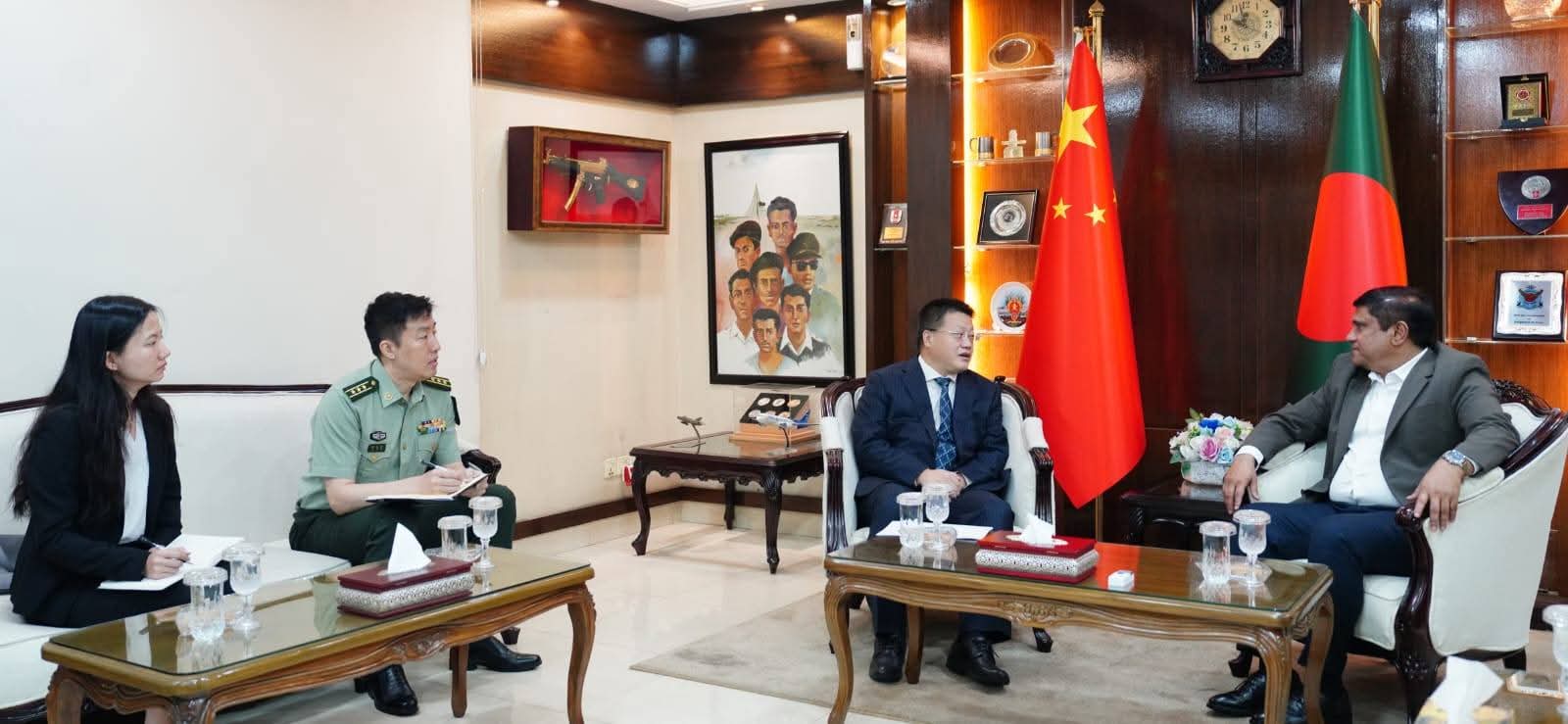 প্রধানমন্ত্রীর প্রতিরক্ষা উপদেষ্টা ব্রিগেডিয়ার জেনারেল ড. একেএম শামছুল ইসলাম, পিএসসি, জি (অব:) এর সঙ্গে বাংলাদেশে নিযুক্ত চীনের মান্যবর রাষ্ট্রদূত Mr. Yao Wen এর নেতৃত্বে একটি প্রতিনিধিদল সৌজন্য সাক্ষাৎ করেন। ঢাকা সেনানিবাসস্থ সশস্ত্র বাহিনী বিভাগে প্রধানমন্ত্রীর প্রতিরক্ষা উপদেষ্টার কার্যালয়ে আজ মঙ্গলবার (২৮ এপ্রিল ২০২৬) এ সাক্ষাৎকার অনুষ্ঠিত হয়।
