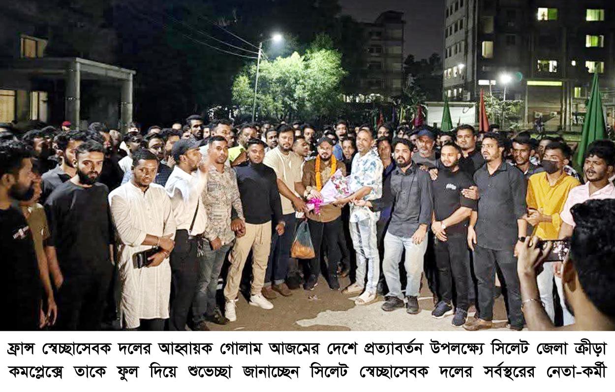 ফ্রান্স স্বেচ্ছাসেবক দলের আহ্বায়ক গোলাম আজমের দেশে প্রত্যাবর্তন উপলক্ষ্যে সংবর্ধনা প্রদান করেছেন সিলেট স্বেচ্ছাসেবক দলের নেতৃবৃন্দ।