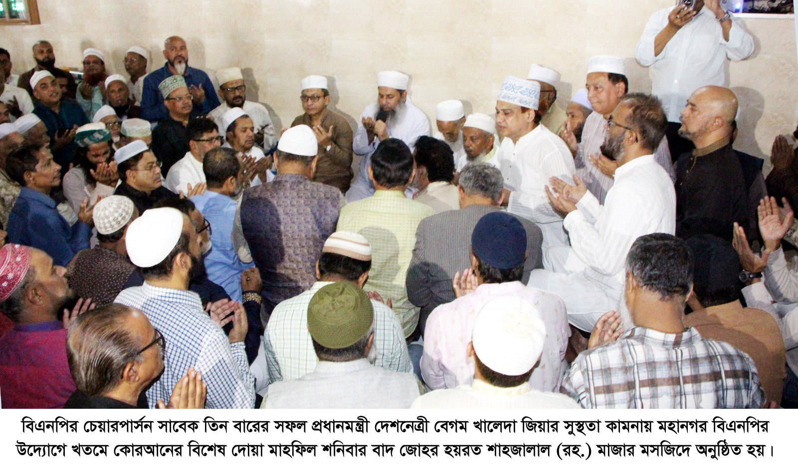 বিএনপির চেয়ারপার্সনের সুস্থতা কামনায় মহানগর বিএনপির খতমে কোরআন ও বিশেষ দোয়া।