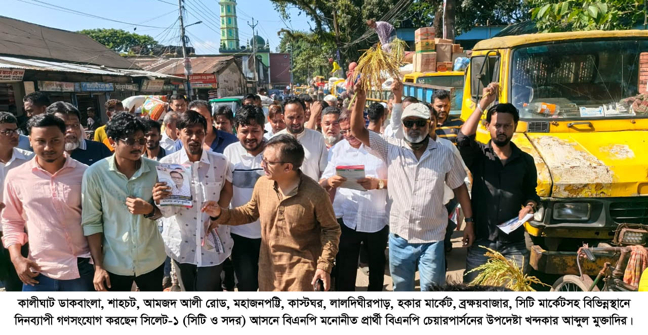 সিলেট-১ (সিটি ও সদর) আসনে বিএনপি মনোনীত প্রার্থী বিএনপি চেয়ারপার্সনের উপদেষ্টা খন্দকার আব্দুল মুক্তাদির বলেছেন, বিএনপি জনগণের ভোটে ক্ষমতায় আসলে সিলেটের ব্যবসায়ীদের স্বার্থ রক্ষায় এবং সিলেটকে ব্যবসায়ীক অঞ্চল হিসেবে গড়ে তুলতে কাজ করবো। অর্থনীতিকে সমৃদ্ধ করতে ও নতুন কর্মসংস্থান সৃষ্টি করতে সিলেটের ব্যবসাদের জন্য সুষ্ঠু পরিবেশ নিশ্চিত করতে সকল ব্যবসায়ীদের নিয়ে পরিকল্পনা করে কাজ করবো। ইনশাআল্লাহ গণতান্ত্রিক সরকার ক্ষমতায় আসলে সবার ঐক্যবদ্ধ প্রচেষ্ঠায় দেশর অর্থনীতি দ্রুত অগ্রগতির দিকে যাবে। দেশকে এগিয়ে নিতে হলে আগে বিনিয়োগের পরিবেশ সৃষ্টি করতে হবে। দেশে বিনিয়োগ না হলে বেকারত্ব আরও বাড়বে, যা সামাজিক বিশৃঙ্খলা বাড়াবে।