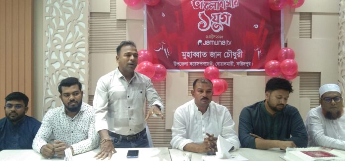 যমুনা টেলিভিশনের বোয়ালমারী করেসপন্ডেন্ট মুহাব্বাত জান চৌধুরীর সভাপতিত্বে এবং স্থানীয় গণমাধ্যম কর্মী আমীর চারু বাবলুর সঞ্চালনায় অনুষ্ঠিত আলোচনা সভায় বক্তারা বলেন, গত ১২ বছরে বস্তুনিষ্ঠ, সাহসী ও অনুসন্ধানী সাংবাদিকতার মাধ্যমে যমুনা টেলিভিশন দেশের মানুষের আস্থা অর্জন করেছে। দুর্নীতি, অনিয়ম ও জনদুর্ভোগের সংবাদ তুলে ধরে সাধারণ মানুষের কণ্ঠস্বর হিসেবে গুরুত্বপূর্ণ ভূমিকা রাখছে এই গণমাধ্যমটি। অনুষ্ঠানে যমুনা টেলিভিশনের বোয়ালমারী করেসপন্ডেন্ট মুহাব্বাত জান চৌধুরীর বড় ভাই বিশিষ্ট ব্যবসায়ী মোশাররফ হোসেন চৌধুরী, উপজেলা বিএনপির সাধারণ সম্পাদক সঞ্জয় সাহা, পৌর জামায়াতের আমীর মাওলানা সৈয়দ নিয়ামুল হাসান, পৌর বিএনপির সাধারণ সম্পাদক ইমরান হোসাইন, প্রবীণ সাংবাদিক কাজী হাসান ফিরোজ, কাজী আমিনুল ইসলাম, পৌর যুবদলের সাধারণ সম্পাদক আল আমিনসহ বিভিন্ন গণ্যমান্য ব্যক্তি উপস্থিত ছিলেন। বক্তারা বলেন, “সত্য প্রকাশে নির্ভীক ভূমিকার কারণে যমুনা টেলিভিশন ইতোমধ্যেই দর্শকদের হৃদয়ে স্থান করে নিয়েছে। ভবিষ্যতেও এই ধারা অব্যাহত থাকবে বলে আমরা আশাবাদী।”