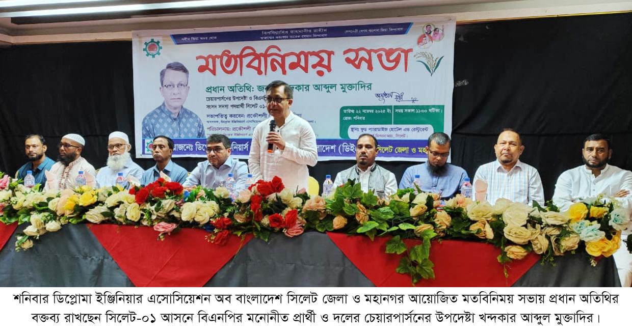শনিবার (২২ নভেম্বর) দুপুরে নগরের একটি হলে ডিপ্লোমা ইঞ্জিনিয়ার এসোসিয়েশন অব বাংলাদেশ সিলেট জেলা ও মহানগর এর উদ্যোগে আয়োজিত এক মতবিনিময় সভায় প্রধান অতিথির বক্তব্যে এসব কথা বলেন তিনি। মতবিনিময় সভায় সভাপতিত্ব করেন সংগঠনের আহবায়ক প্রকৌশলী মো. ফরিদ মিয়া। সংগঠনের সদস্য সচিব প্রকৌশলী মো. আবুজর গউছ এর পরিচালনায় এতে প্রধান বক্তার বক্তব্য রাখেন বিএনপির জাতীয় নির্বাহী কমিটির সহ সংগঠনিক সম্পাদক মিফতাহ সিদ্দিকী।