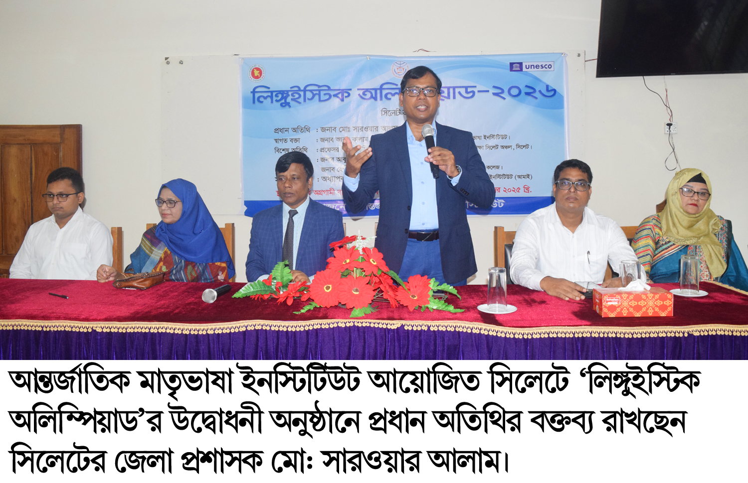 আয়োজিত অনুষ্ঠানে ভাষাবিজ্ঞানী ও আন্তর্জাতিক মাতৃভাষা ইনস্টিটিউটের পরিচালক অধ্যাপক ড. মুহাম্মদ আসাদুজ্জামান এর সভাপতিত্বে ও লিঙ্গুইস্টিক অলিম্পিয়াড এর সদস্য-সচিব ও আন্তর্জাতিক মাতৃভাষা ইনস্টিটিউটের উপপরিচালক (প্রশাসন) ড. খিলফাত জাহান মুবাইরাহ’র পরিচালনায় স্বাগত বক্তব্য রাখেন, লিঙ্গুইস্টিক আন্তর্জাতিক মাতৃভাষা ইনস্টিটিউটের অতিরিক্ত পরিচালক (প্রশাসন) আবুল কালাম। বিশেষ অতিথির বক্তব্য রাখেন, মাধ্যমিক ও উচ্চ শিক্ষা সিলেট অঞ্চলের পরিচালক প্রফেসর গিয়াস উদ্দিন, সিলেট জেলা শিক্ষা অফিসার আবু সাঈদ মো: আব্দুল ওয়াদুদ, সরকারি অগ্রগামী বালিকা উচ্চ বিদ্যালয় ও কলেজের প্রধান শিক্ষক হেপী বেগম।