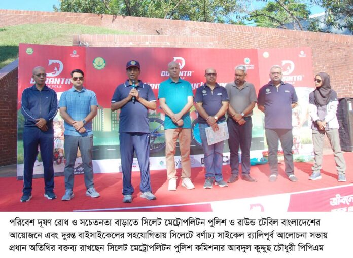 পরিবেশ দূষণ রোধ ও সচেতনতা বাড়াতে সিলেট মেট্রোপলিটন পুলিশ ও রাউন্ড টেবিল বাংলাদেশের আয়োজনে এবং দুরন্ত বাইসাইকেলের সহযোগিতায় সিলেটে অনুষ্ঠিত হলো বর্ণাঢ্য সাইকেল র্যালি।