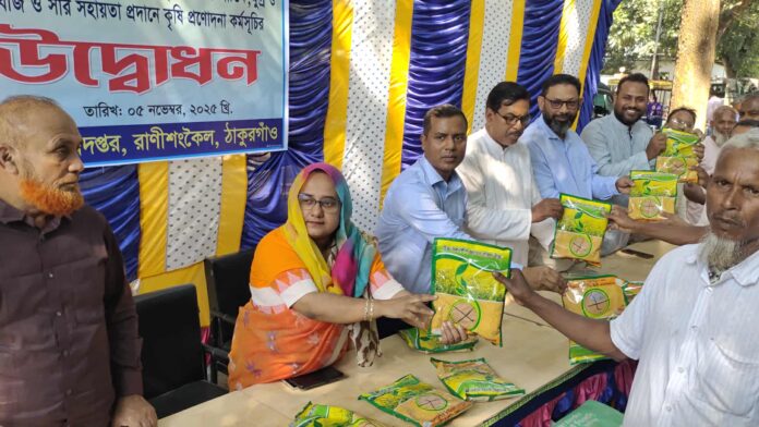 ঠাকুরগাঁওয়ের রাণীশংকৈলে ২০২৫-২৬ অর্থবছরের রবি মৌসুমে গম, সরিষা, পেঁয়াজ ও চিনাবাদামের আবাদ বৃদ্ধি করতে ১১ হাজার ৫০০ জন প্রান্তিক, ক্ষুদ্র ও মাঝারি কৃষকের মাঝে বিনামূল্যে সার ও বীজ বিতরণ কার্যক্রমের উদ্বোধন করা হয়েছে।