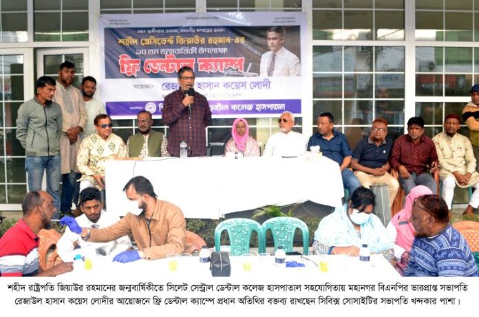 মহান স্বাধীনতার ঘোষক, বহুদলীয় গণতন্ত্রের প্রবক্তা, আধুনিক বাংলাদেশের স্থপতি ও বিএনপি’র প্রতিষ্ঠাতা চেয়ারম্যান, শহীদ রাষ্ট্রপতি জিয়াউর রহমান (বীর উত্তম)-এর ৯০তম জন্মবার্ষিকী উপলক্ষ্যে সোমবার (১৯ জানুয়ারি) সকালে সিলেট সেন্ট্রাল ডেন্টাল কলেজ হাসপাতাল সহযোগিতায় মহানগর বিএনপির ভারপ্রাপ্ত সভাপতি রেজাউল হাসান কয়েস লোদীর আয়োজনে হাসপাতাল প্রঙ্গানে ফ্রি ডেন্টাল ক্যাম্প অনুষ্ঠিত হয়।