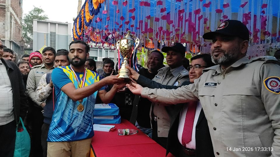 চাঁপাইনবাবগঞ্জের শিবগঞ্জ উপজেলার কানসাটে মাদকের বিরুদ্ধে সচেতনতা বৃদ্ধির লক্ষ্যে বর্ণাঢ্য আয়োজনে ‘মাদকবিরোধী ভলিবল প্রতিযোগিতা-২০২৬’ অনুষ্ঠিত হয়েছে। বুধবার বিকেলে জেলা প্রশাসন ও মাদকদ্রব্য নিয়ন্ত্রণ অধিদপ্তরের যৌথ উদ্যোগে কানসাট ইউনিয়নের আব্বাস বাজারে অনু্ষ্ঠিত খেলায় ৫৮-৭১ পয়েন্টে গোমস্তাপুর উপজেলা দলকে হারিয়ে চ্যাম্পিয়ন হয় শিবগঞ্জ উপজেলা দল।অনুষ্ঠানের মূল প্রতিপাদ্য ছিল— “মাদক নয়, হোক জীবনের জয়”। খেলায় প্রধান অতিথি হিসেবে উপস্থিত ছিলেন চাঁপাইনবাবগঞ্জ সরকারি মহিলা কলেজের অধ্যক্ষ প্রফেসর ড. বিপ্লব কুমার মজুমদার। অনুষ্ঠানে সভাপতিত্ব করেন মাদকদ্রব্য নিয়ন্ত্রণ অধিদপ্তর, চাঁপাইনবাবগঞ্জ-এর উপপরিচালক চৌধুরী ইমরুল হাসান। প্রধান অতিথির বক্তব্যে প্রফেসর ড. বিপ্লব কুমার মজুমদার বলেন, যুবসমাজকে মাদকের করাল গ্রাস থেকে রক্ষা করতে খেলাধুলার বিকল্প নেই। সুস্থ ও সুন্দর জীবন গড়তে তরুণদের মাঠে ফিরে আসতে হবে। এছাড়া ও উপস্থিত ছিলেন সহকারী অধ্যাপক আব্দুল মবিন, সহকারী অধ্যাপক মোঃ মাসুম, মোঃ টমাস মাষ্টার সহ ক্রীড়া প্রেমীরা। ভলিবল প্রতিযোগিতায় স্থানীয় ক্রীড়াপ্রেমী ও বিপুল সংখ্যক দর্শক উপস্থিত হয়ে খেলোয়াড়দের উৎসাহিত করেন। খেলা শেষে বিজয়ীদের মাঝে পুরস্কার বিতরণ করা হয়।
