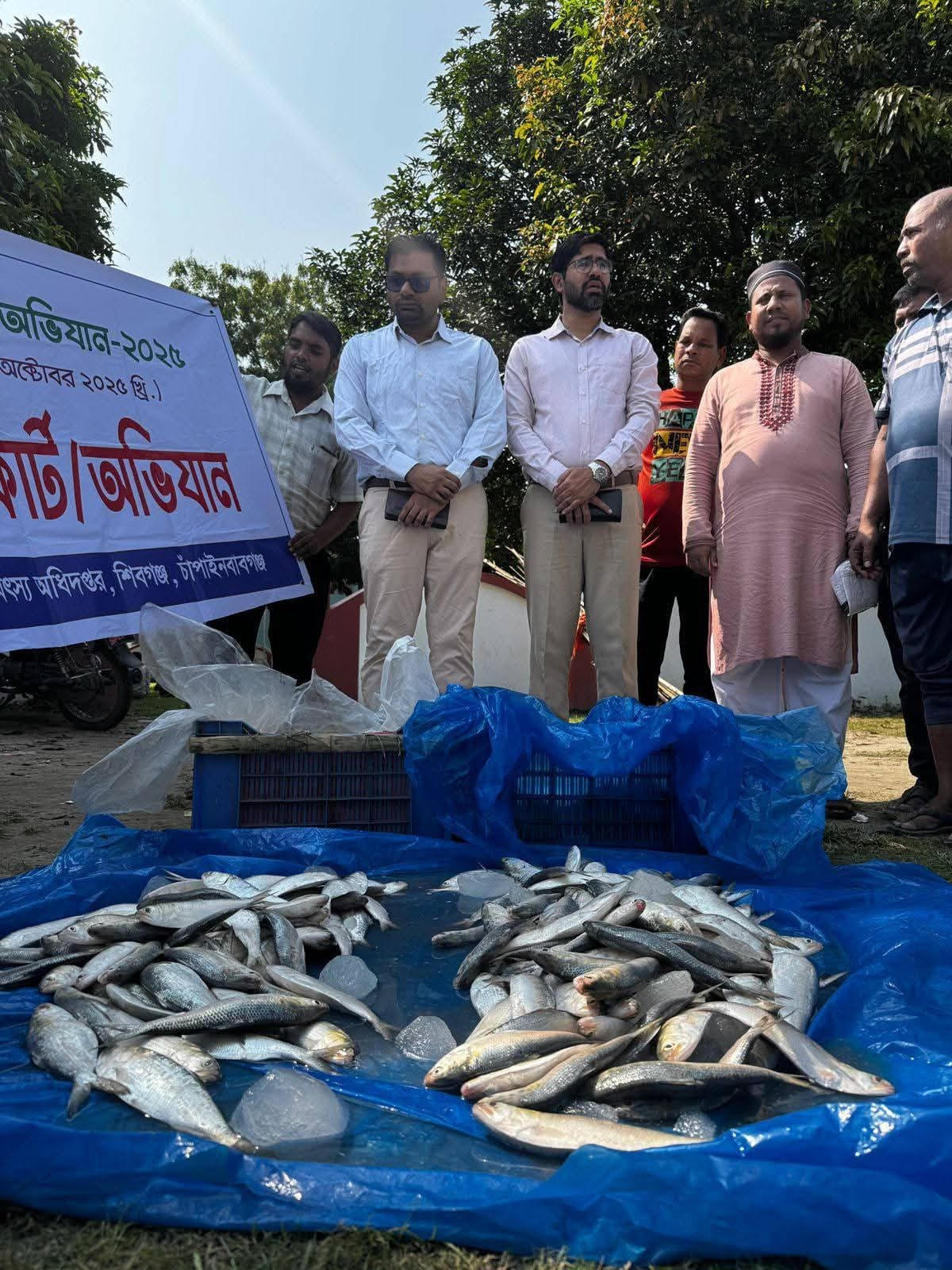 শিবগঞ্জে মা-ইলিশ সংরক্ষণ অভিযানে ৬০ কেজি ইলিশ জব্দ।
