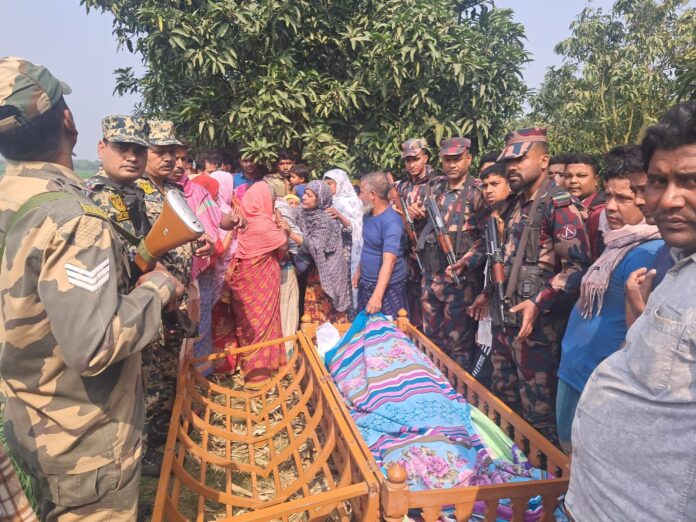শিবগঞ্জ সীমান্তে মানবিক কারণে বিজিবি ও বি এস এফের সহযোগিতায় স্বজনের লাশ দেখতে পেল ভারতীয় নাগরিক আত্মীয়রা।