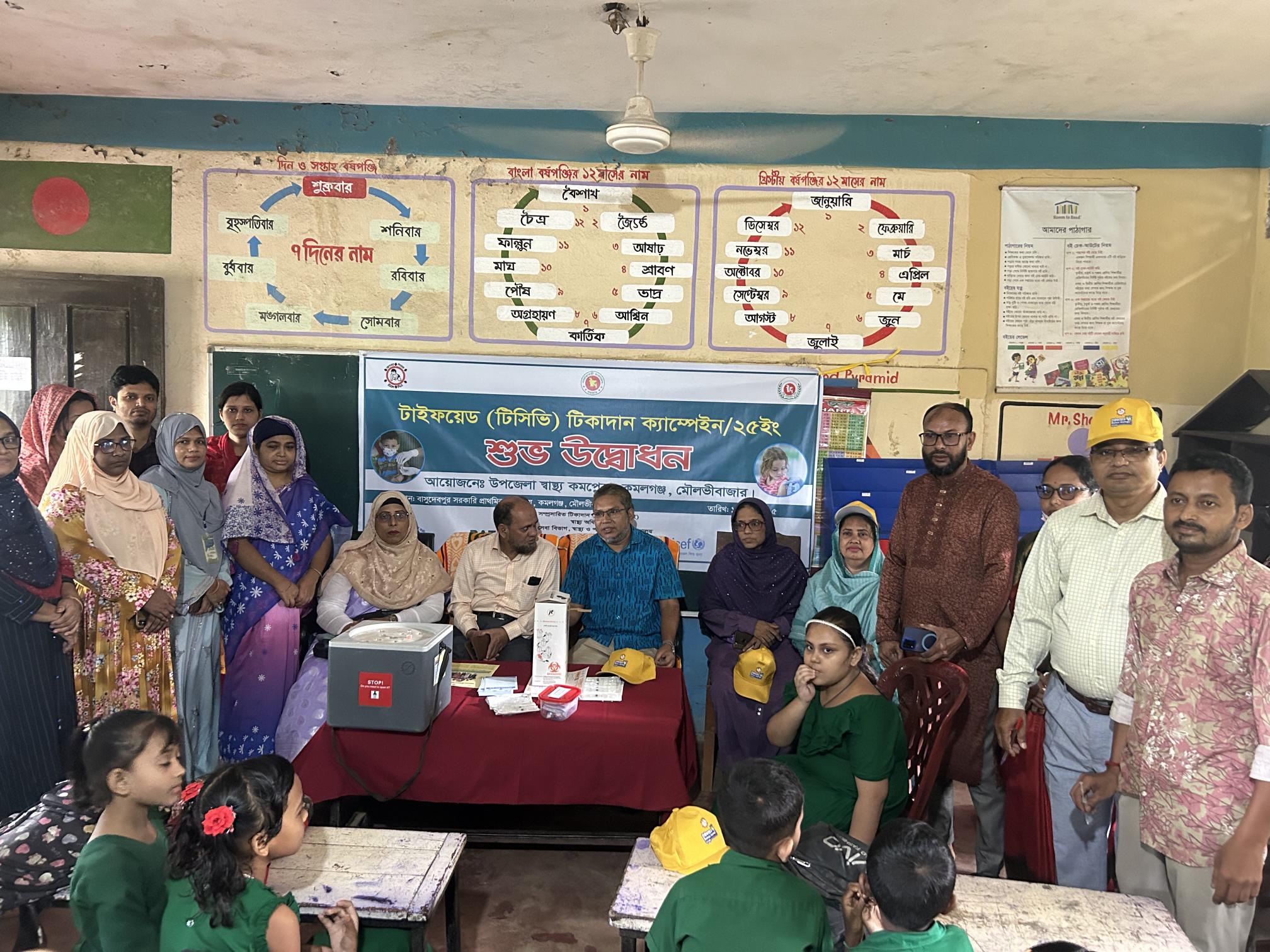 শিশুদের প্রাণঘাতী রোগ টাইফয়েড প্রতিরোধে সারাদেশে একযোগে শুরু হয়েছে টিসিভি (Typhoid Conjugate Vaccine) টিকাদান কর্মসূচি। এই জাতীয় কর্মসূচির অংশ হিসেবে শনিবার (১২ অক্টোবর) মৌলভীবাজার জেলার কমলগঞ্জ উপজেলার বাসুদেবপুর সরকারি প্রাথমিক বিদ্যালয়ে অনুষ্ঠিত হয় উদ্বোধনী টিকাদান ক্যাম্পেইন।