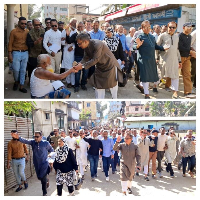 ধানের শীষের প্রার্থী খন্দকার আব্দুল মুক্তাদিরের নেতৃত্বে বুধবার সকাল থেকে সিলেট-১ আসনভূক্ত দক্ষিণ সুরমা এলাকায় গণসংযোগ শুরু হয়। কদমতলি জামে মসজিদের সামনে থেকে শুরু হওয়া মিছিলটি বিএনপি ও অঙ্গসংগঠনের নেতাকর্মী এবং সাধারণ মানুষের উপস্থিতিতে লোকারণ্য হয়ে ওঠে। মিছিল আলমপুর, গোটাটিকর, কদমতলি পয়েন্ট, ঝালোপাড়া, ভার্থখলা, মমিনখলাসহ ২৫, ২৬ ও ২৭নং ওয়ার্ডের বিভিন্ন এলাকা ঘুরে শেষ হয়। হাজার হাজার জনতার অংশগ্রহণে এই প্রচার মিছিলে খন্দকার মুক্তাদিরকে স্বতঃস্ফূর্তভাবে শুভেচ্ছা জানান সাধারণ মানুষ। অনেকেই তাদের প্রত্যাশার কথা তাঁর কাছে ব্যক্ত করেন। তাদের কথা মনোযোগ সহকারে শুনে নির্বাচিত হলে তা পূরণের আশ্বাস দেন মুক্তাদির।