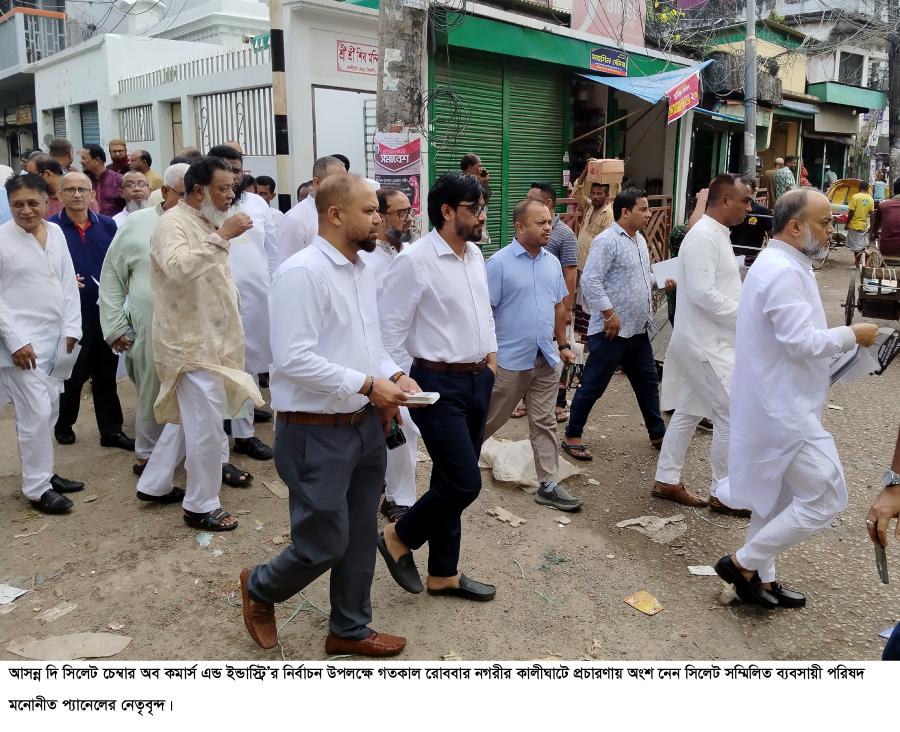 আগামী ১ লা নভেম্বর শনিবার অনুষ্টিতব্য দি সিলেট চেম্বার অব কমার্স এন্ড ইন্ডাস্ট্রি’র ২০২৫-২৭ সাল মেয়াদের নির্বাচনকে ঘিরে উৎসবের আমেজ বিরাজ করছে সিলেটে জুড়ে। বিপুল- উৎসাহ উদ্দীপনা নিয়ে প্রচারণা চালাচ্ছেন সিলেট সম্মিলিত ব্যবসায়ী পরিষদ।
