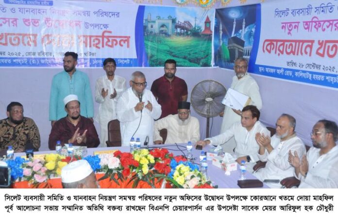 সিলেট ব্যবসায়ী সমিতি ও যানবাহন নিয়ন্ত্রণ সমন্বয় পরিষদের নতুন অফিসের উদ্বোধন উপলক্ষে রবিবার (২৮ সেপ্টেম্বর) বেলা ২টায় কোরআনে খতমে দোয়া মাহফিল অনুষ্ঠিত হয়।