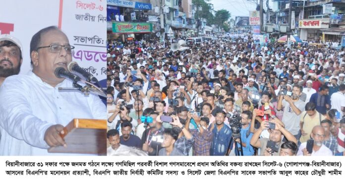 রবিবার (৫ অক্টোবর) বিকেলে বিয়ানীবাজার পয়েন্টে ৩১ দফার পক্ষে জনমত গঠনে লক্ষ্যে গণমিছিল পরবর্তী বিশাল গণসমাবেশে প্রধান অতিথির বক্তব্যে তিনি উপরোক্ত কথাগুলো বলেন। গণমিছিলটি বিয়ানীবাজার উপজেলা সদরের পিএইচজি হাইস্কুল মাঠ থেকে শুরু হয়। এসময় বিয়ানীবাজার উপজেলার সকল ইউনিয়ন, পৌর এবং এলাকার সকল ওয়ার্ডের বিএনপি, অঙ্গ সহযোগী সংগঠনের কয়েক সহস্রাধিক নেতাকর্মী ৩১ দফার পক্ষে ব্যানার, ফেস্টুন ও লিফলেট হাতে নিয়ে মিছিলে অংশ করেন।