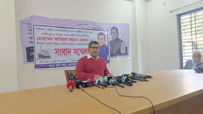 বোয়ালমারী প্রতিনিধি : সংবিধান, প্রচলিত আইন ও গণপ্রতিনিধিত্ব আদেশ (RPO) লঙ্ঘন করে ফরিদপুর-১ আসনে স্বতন্ত্র প্রার্থী জাহাজ প্রতীকের মোহাম্মদ আরিফুর রহমান দোলনকে নির্বাচন থেকে সরিয়ে দেওয়ার চক্রান্ত ও ষড়যন্ত্রের প্রতিবাদে জরুরি সংবাদ সম্মেলন করেছেন তিনি। শুক্রবার দুপুরে ফরিদপুরের আলফাডাঙ্গা উপজেলার কামারগ্রাম এলাকার নিজ বাড়িতে এ সংবাদ সম্মেলন অনুষ্ঠিত হয়। সংবাদ সম্মেলনে মোহাম্মদ আরিফুর রহমান দোলন অভিযোগ করে বলেন, তিনি সংবিধান ও নির্বাচনী আইনের সকল শর্ত পূরণ করেও একটি পরিকল্পিত ষড়যন্ত্রের শিকার হচ্ছেন। ভোটের মাঠে প্রতিদ্বন্দ্বিতা করার সাহস না পেয়ে একটি মহল আদালত ও প্রশাসনিক প্রক্রিয়াকে ব্যবহার করে তাকে নির্বাচনী ময়দান থেকে সরিয়ে দেওয়ার চেষ্টা করছে। তিনি আরও অভিযোগ করেন, একটি স্বাধীনতাবিরোধী শক্তিকে সুবিধা দিতেই তার বিরুদ্ধে এই বেআইনি ব্যবস্থা নেওয়া হচ্ছে এবং উদ্দেশ্যমূলকভাবে তাকে নির্বাচন থেকে সরিয়ে দেওয়ার অপচেষ্টা চলছে। এর মাধ্যমে ফরিদপুর-১ আসনে একটি নির্দিষ্ট গোষ্ঠীর জন্য মাঠ ফাঁকা করার ষড়যন্ত্র করা হচ্ছে বলে তিনি দাবি করেন। দোলন বলেন, গণপ্রতিনিধিত্ব আদেশের (RPO) কোথাও উল্লেখ নেই যে অতীতে কেউ আওয়ামী লীগের রাজনীতির সঙ্গে যুক্ত থাকলে তিনি নির্বাচনে অযোগ্য হবেন। তারপরও সেই অতীত রাজনৈতিক পরিচয়কে অজুহাত বানিয়ে তার প্রার্থিতা আটকে দেওয়া হচ্ছে, যা স্পষ্টতই আইনের অপব্যবহার। তিনি বলেন, যেখানে ঋণখেলাপি ও দ্বৈত নাগরিকত্বের অভিযোগ থাকা প্রার্থীরাও উচ্চ আদালতের মাধ্যমে নির্বিঘ্নে নির্বাচনে অংশ নেওয়ার সুযোগ পাচ্ছেন, সেখানে সব ধরনের বৈধ যোগ্যতা থাকা সত্ত্বেও একজন স্বতন্ত্র প্রার্থীকে বাধা দেওয়া চরম বৈষম্য। তিনি আরও বলেন, অন্য প্রার্থীদের ক্ষেত্রে আদালতের আদেশের লিখিত কপি দ্রুত সরবরাহ করা হলেও তার ক্ষেত্রে সেই কাগজ ইচ্ছাকৃতভাবে আটকে রাখা হয়েছে। এর মাধ্যমে ফরিদপুর-১ আসনে ভোটারদের ভোটকেন্দ্রে যাওয়ার উৎসাহ নষ্ট করার চেষ্টা চলছে বলেও তিনি অভিযোগ করেন। দোলনের দাবি, প্রার্থিতা স্থগিত রেখে ১২ ফেব্রুয়ারির নির্বাচনকে সাজানো ও প্রশ্নবিদ্ধ করার একটি সুস্পষ্ট উদাহরণ তৈরি করা হচ্ছে ফরিদপুর-১ আসনে। এতে নির্বাচন ব্যবস্থা ও গণতন্ত্রের ওপর সাধারণ মানুষের আস্থা মারাত্মকভাবে ক্ষতিগ্রস্ত হবে বলে তিনি আশঙ্কা প্রকাশ করেন। সংবাদ সম্মেলনে তিনি এই ষড়যন্ত্রের বিরুদ্ধে আইনগত লড়াই অব্যাহত রাখার ঘোষণা দিয়ে বলেন, জনগণকে সঙ্গে নিয়েই সব চক্রান্ত মোকাবিলা করা হবে। একই সঙ্গে তিনি নির্বাচন কমিশনসহ সংশ্লিষ্ট কর্তৃপক্ষের প্রতি আহ্বান জানান, যেন বিষয়টি নিরপেক্ষভাবে পর্যালোচনা করে ন্যায়বিচার নিশ্চিত করা হয়। সংবাদ সম্মেল
